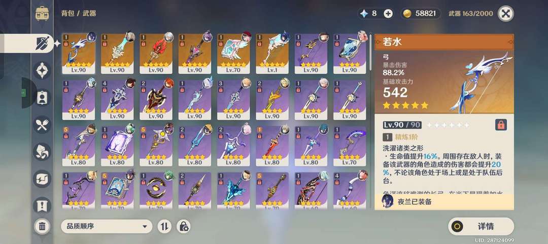 皮肤有夜兰 香菱行秋 武器有杜林夜兰胡桃专武