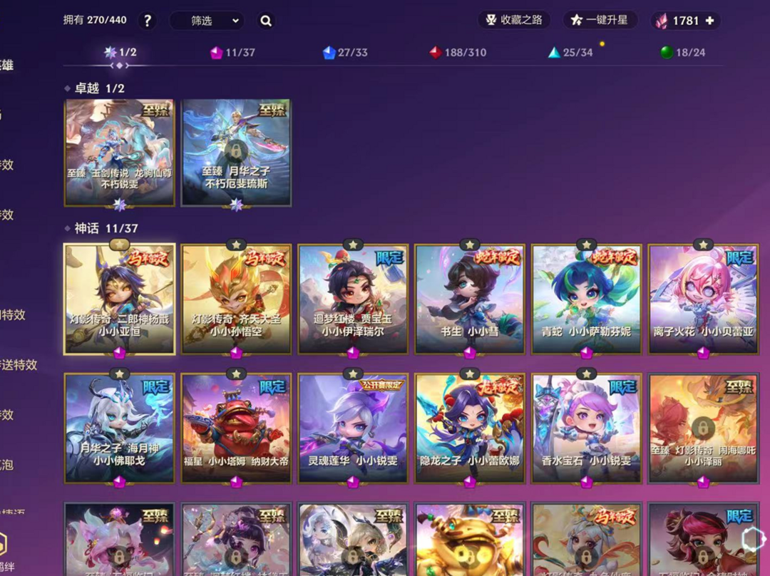 苹果区✨卓越至臻玉剑传说龙驹仙不朽锐雯✨11神话灯影传奇小小亚恒孙悟空锐雯离子火花26竞技场云海九天