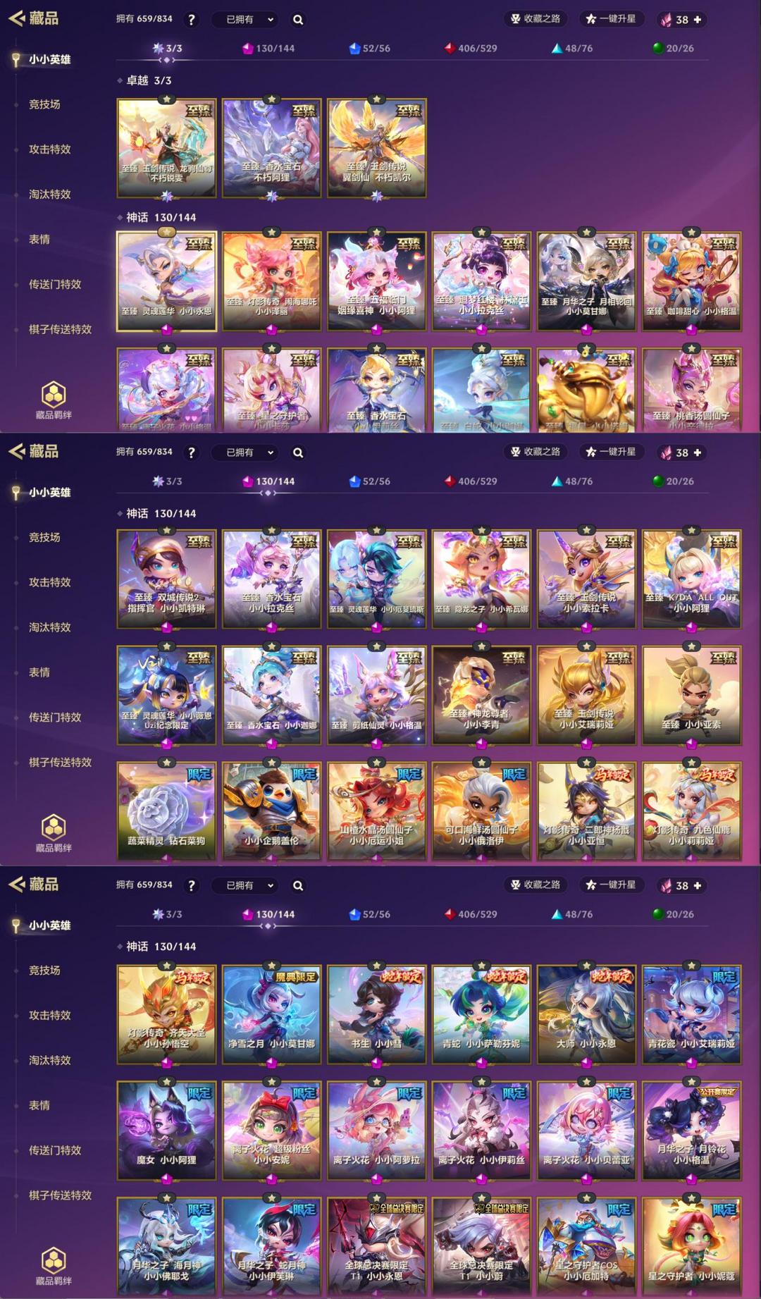 VIC顶级大神皮肤号⭐3卓越29至臻130神话⭐满12神话棋盘⭐龙驹锐雯离子火花格温大金铲特效