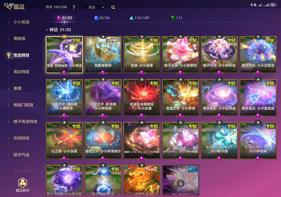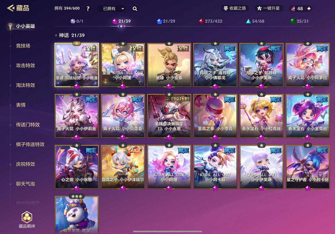 装备描述:【VIP10】至臻剪纸仙灵格温❤至臻KDA阿狸❤至臻亚索❤月华伊莉丝❤离子火花阿萝拉❤离子火花贝雷亚