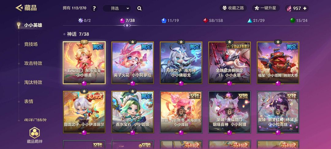 7个神话英雄,2个英雄级棋盘。其他特效都有一点,详情看图片。无违规,段位目前钻石一,谢谢!