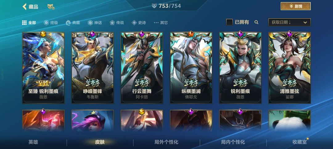 全皮肤755个|王者可排位|兰亭2.0全套|无限火力|臻宝卡莎