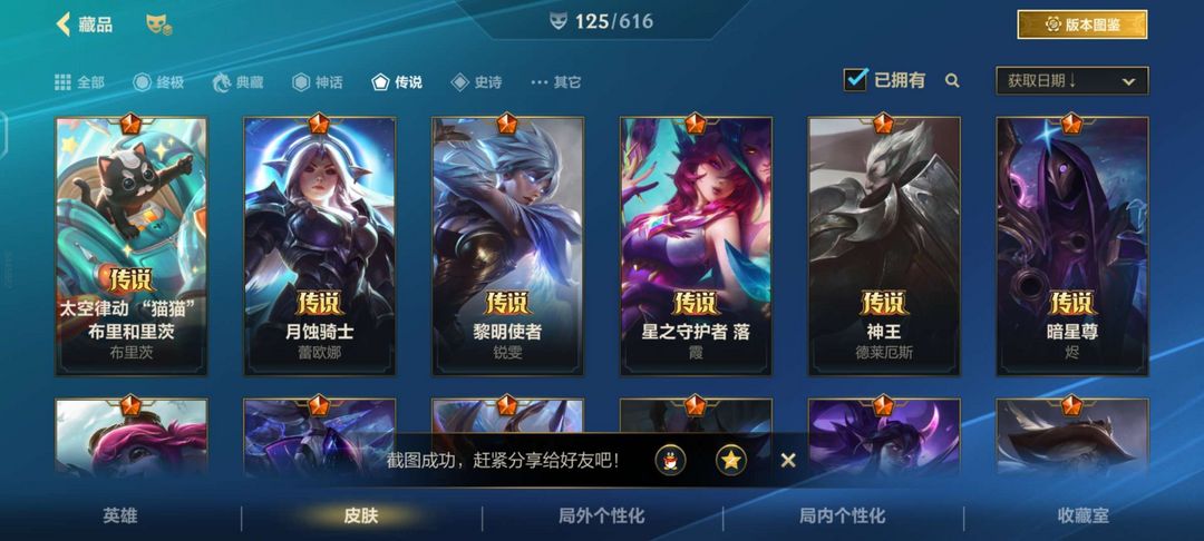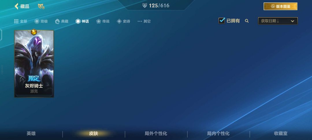 全英雄 125 皮 17 传说 107 史诗 1 神话高质量账号
