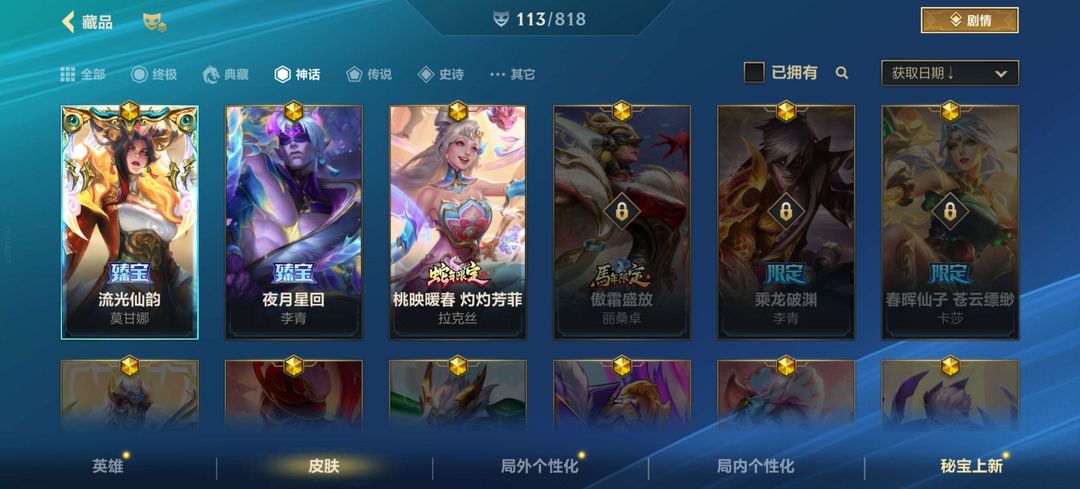 【超凡大师】❤113皮❤流光仙韵灼灼芳菲神王kda❤灵魂莲华星之守护者战斗泳池派对夜月星回❤玉剑传说