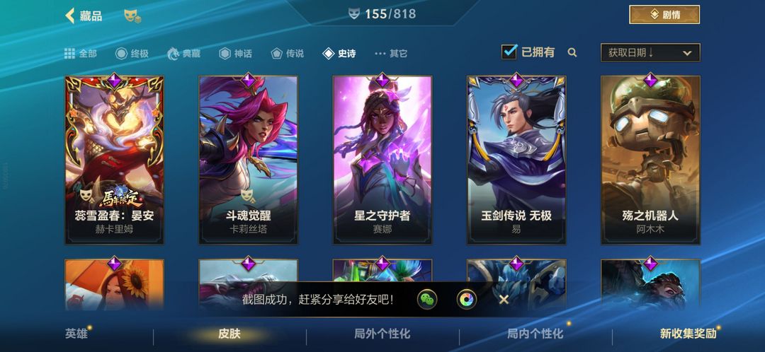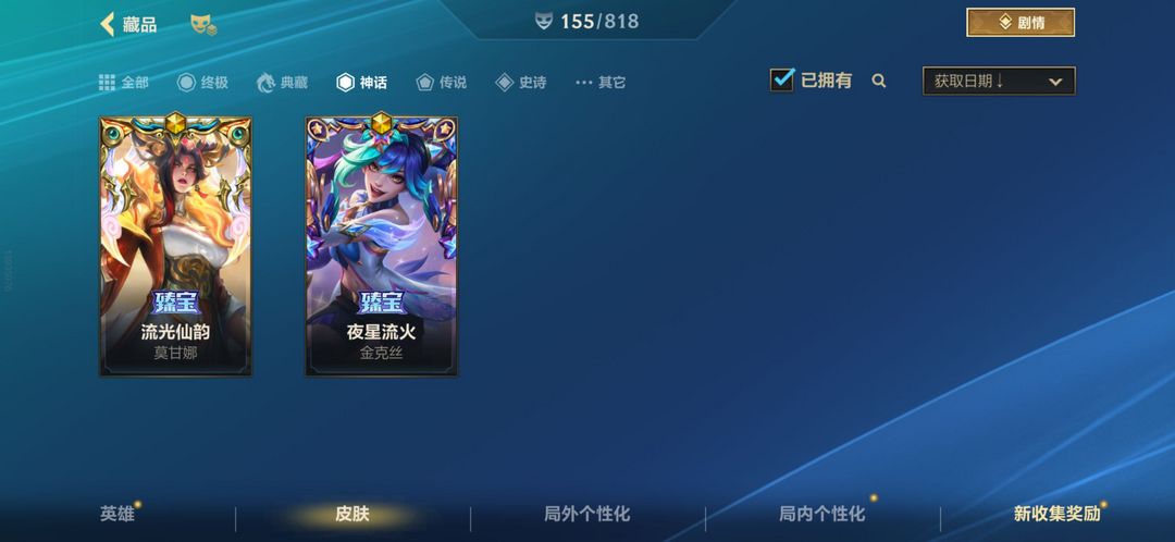 装备描述:傲视宗师❤155皮❤小鹿乱撞❤夜星流火❤神龙尊者❤灵魂莲华❤泳池派对❤神龙尊者❤电玩勇者❤海之歌