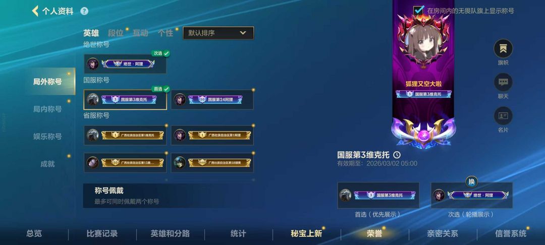 【魂】在榜国服第三维克托✨王者段可排位丨双绝世称号丨峡谷已传说禁止峡谷之巅❤️历史国一狐狸