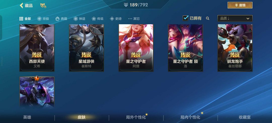 装备描述:神话乘龙破渊李青 神话春晖仙子卡莎 神话战斗学院ez 臻藏光影巨翼剑魔 至臻星之守护者辛德拉 暗星尊烬 神王诺手 源计划vn