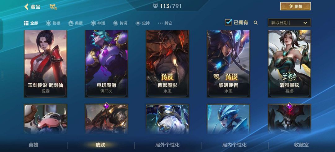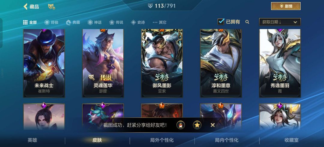 亚索,兰亭序,万豪各种皮肤,传说皮肤17个,终极皮肤21个