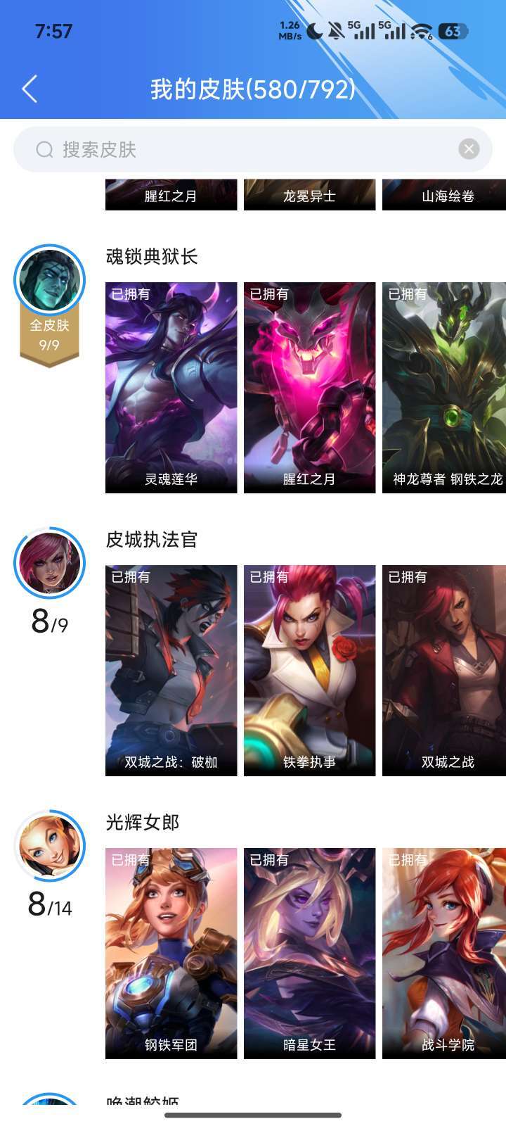 1典藏莎弥拉10神话58传说360史诗总共580皮肤全套心之钢战斗学院等等