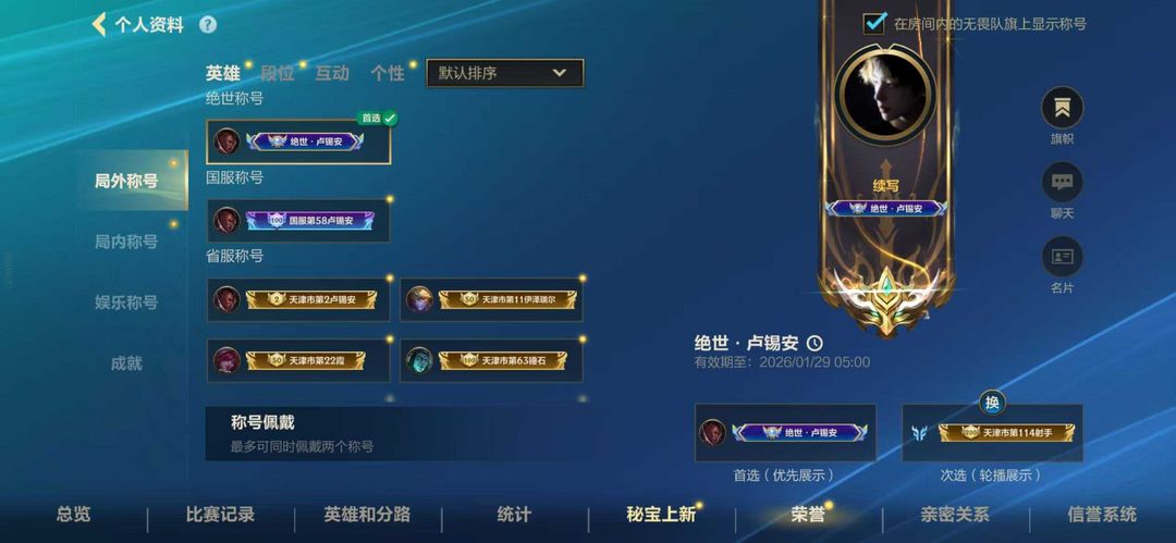 【魂】在榜国榜58绝世卢锡安✨至尊段可排位✨峡谷已传说禁止峡谷之巅✨全英雄臻藏卢锡安✨违规必究