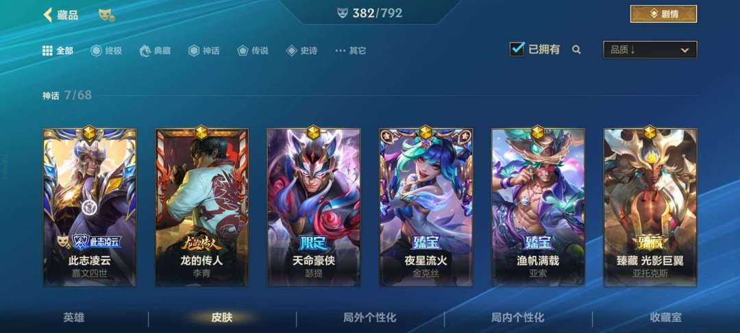 全英雄➕382皮肤多张神话皮➕多张限定传说皮
