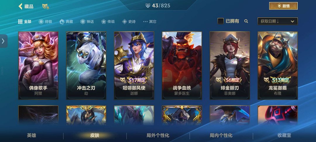 斗魂卡莉斯塔 神龙尊者李青 佛爷哥神话皮 电玩锐雯马年人马 亚索皮肤 很多皮肤