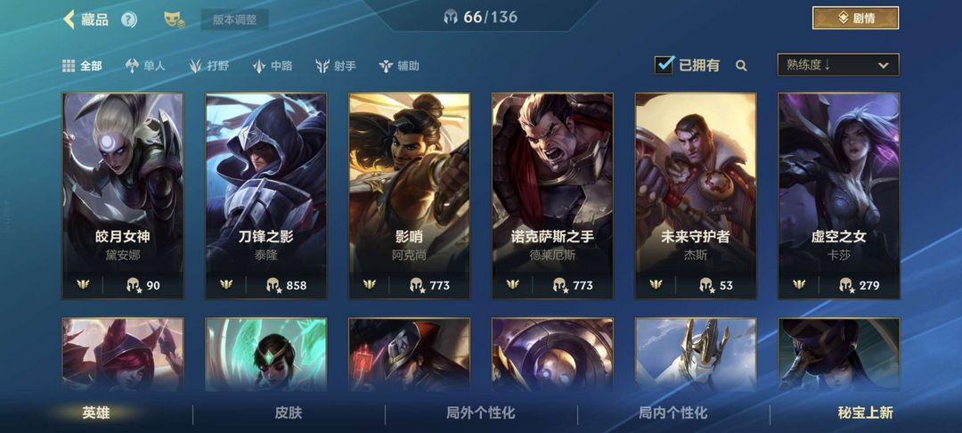 黄金可排位❤️66英雄❤️33皮肤❤️1传说9史诗❤️KDA卡莎❤️福牛守护者❤️