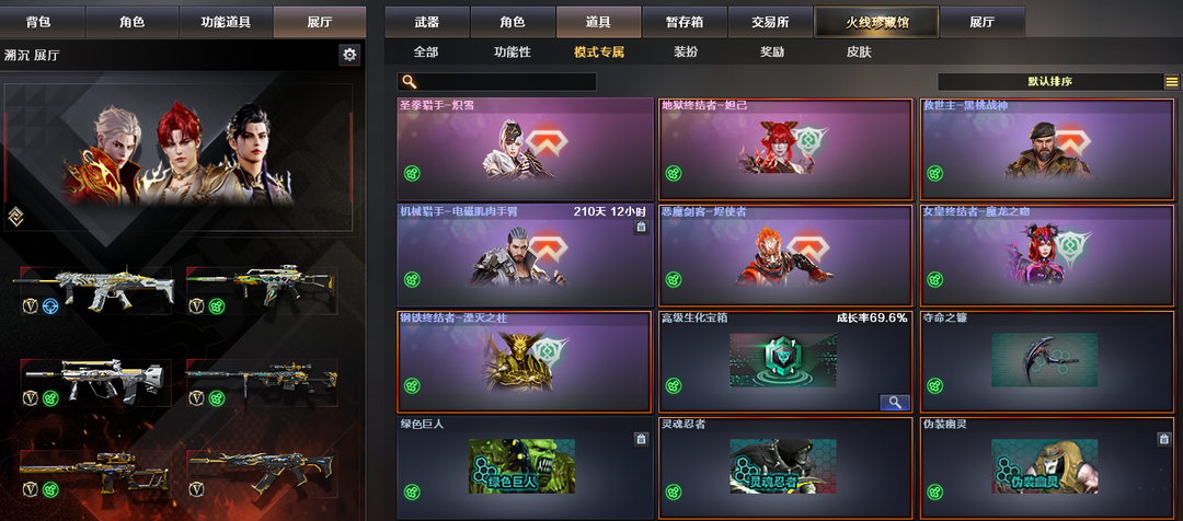 四防神威莲华,炼狱金翼禅狮,5盘龙,5蝴蝶刀。幻神,幻影,天袭,天戎,白虎,qbz,2烈龙evo