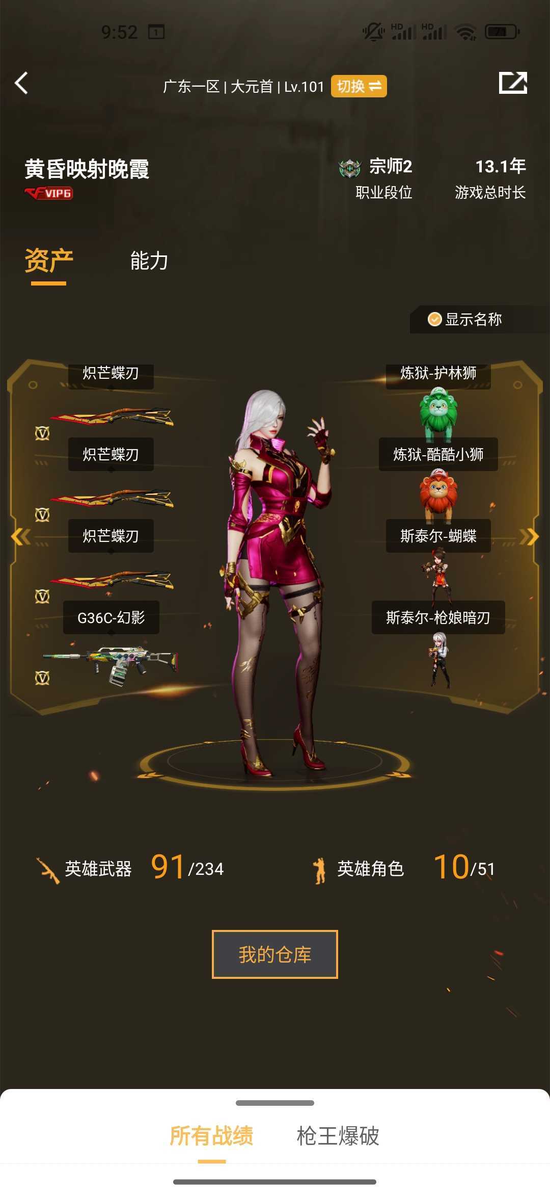 炽芒蝶刃×3狮子炼狱泡泡象×3斯泰尔蝴蝶×2四防传说影煞隼伪6盘6烈挑战灵狐套G36C-幻影满副武器