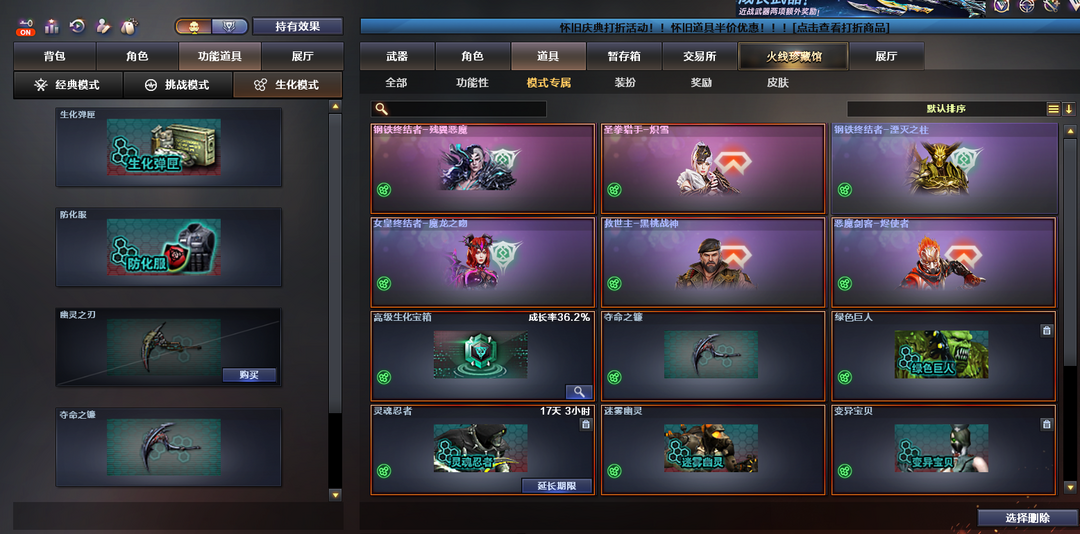 生化拉满✅四防隼✅炽芒蝶刃✅6盘6烈✅斯太尔枪娘暗刃✅异变清道夫✅幻神✅炼狱带皮✅猎手皮肤✅生化齐全
