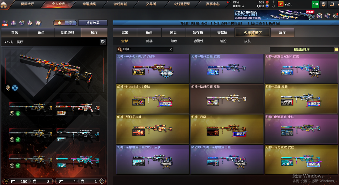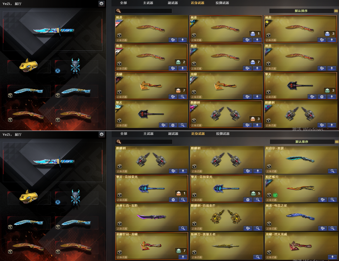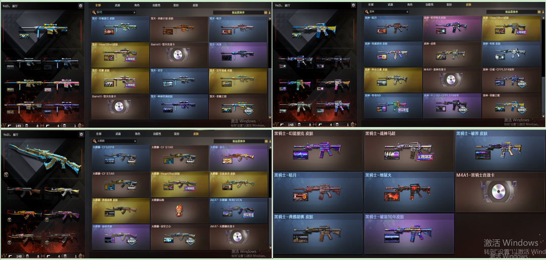 144V传说幽瞳+幽冥+夜影+星骇+圣域+3幻神13皮带卡+星神QBZ裁决各5皮带卡+蝴蝶刀+G36