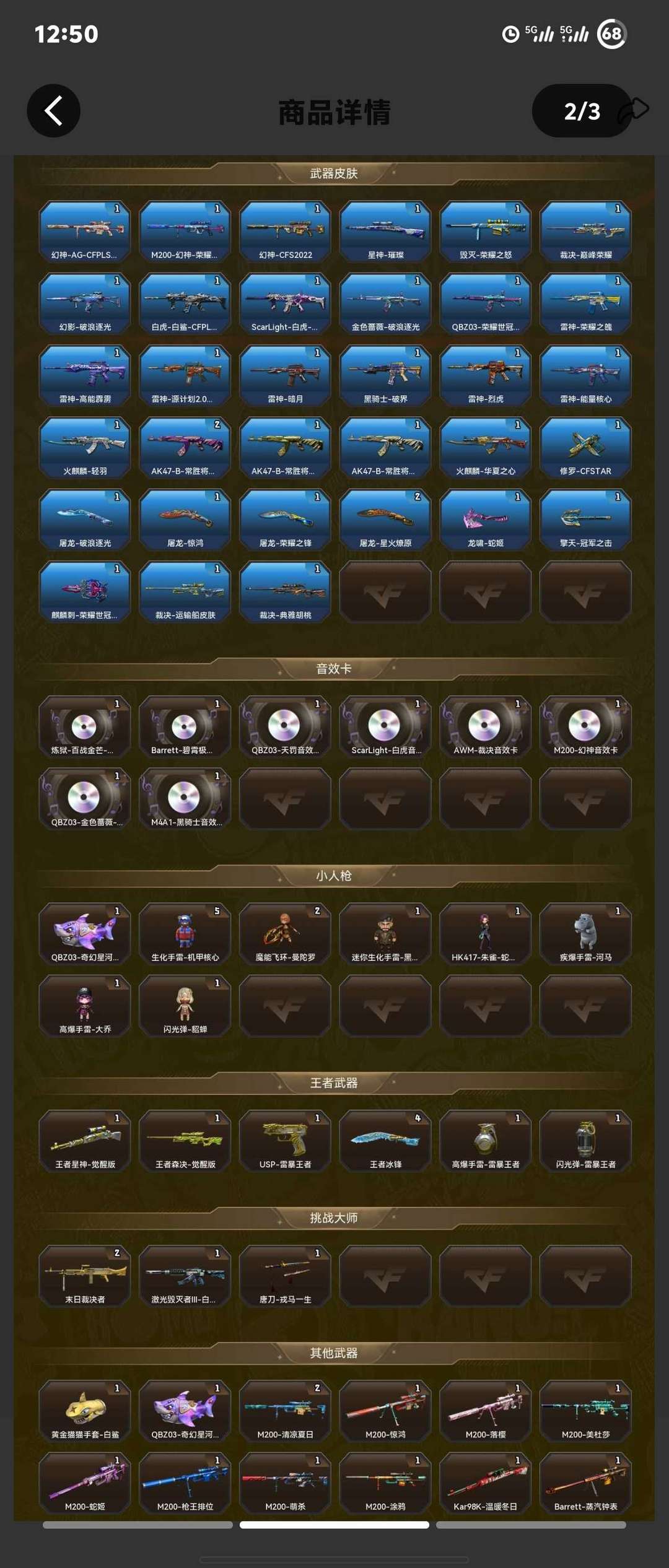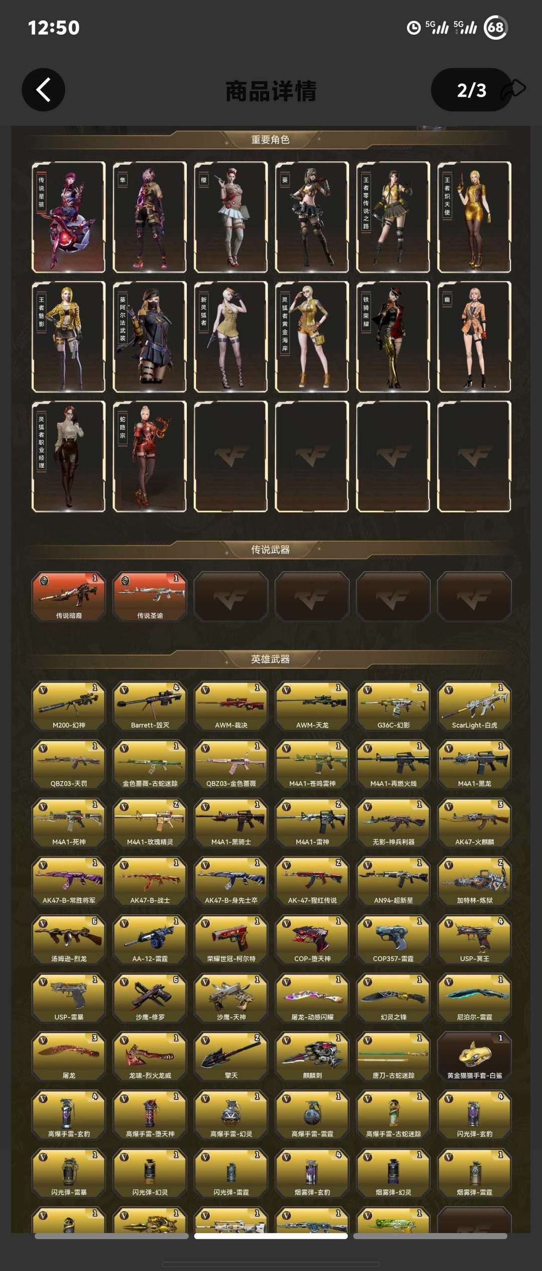 幻神三件套、裁决三件套、qbz奇幻鲨鱼、幻影、天戎、白虎三件套、传说角色、六烈+蝴蝶