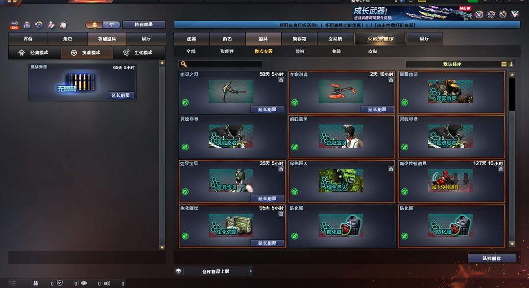 异变镇魔者+飓风双雄+双减速雷+5防生化属性人物+6盘+炼狱不退包+全弹夹+双全装