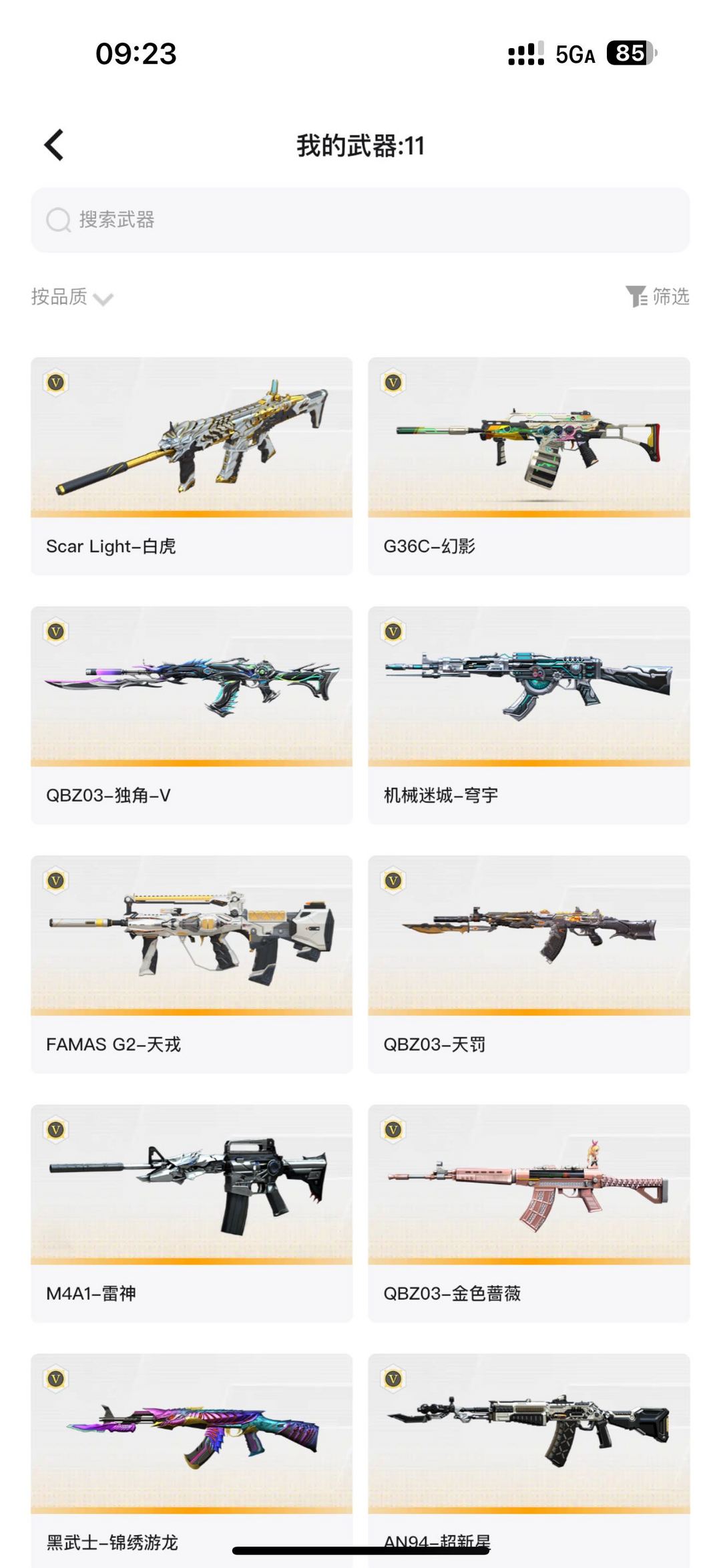 爆破号M200幻神、G36C-幻影、白虎、天罚 金色蔷薇、天戎、炽芒蝶刃