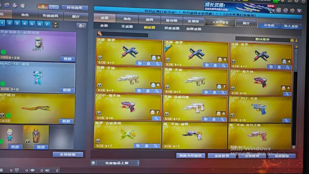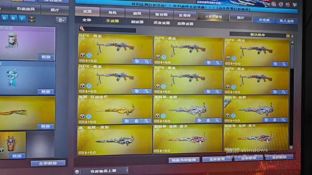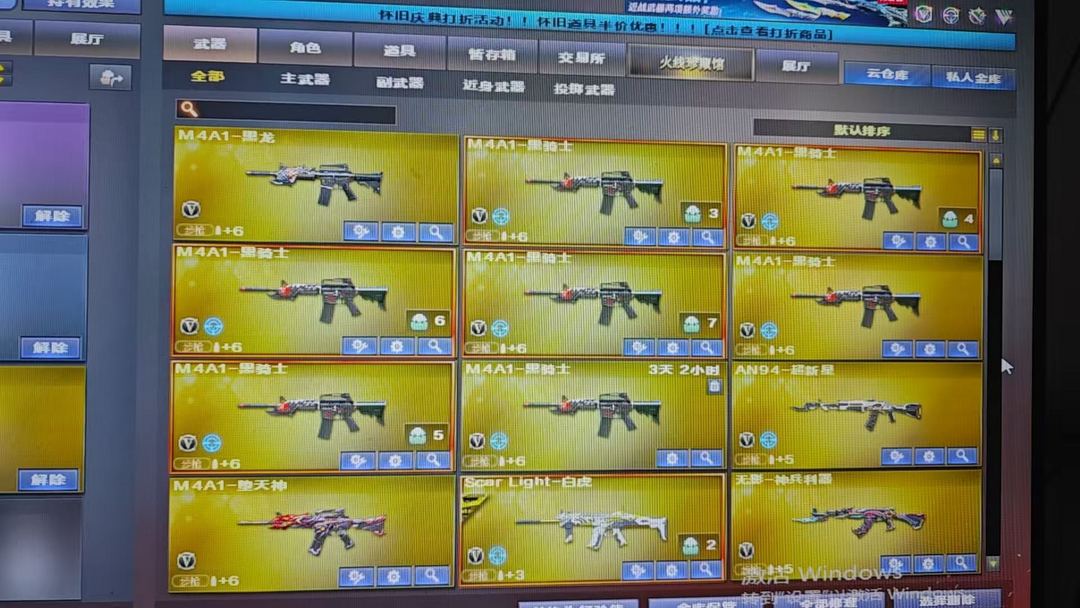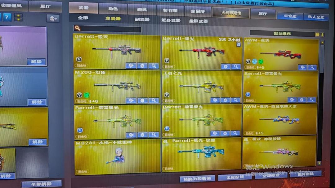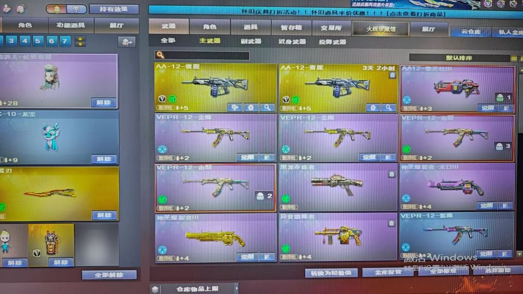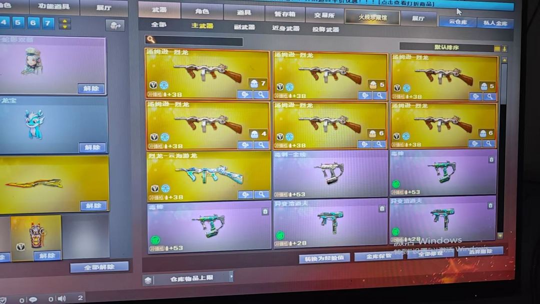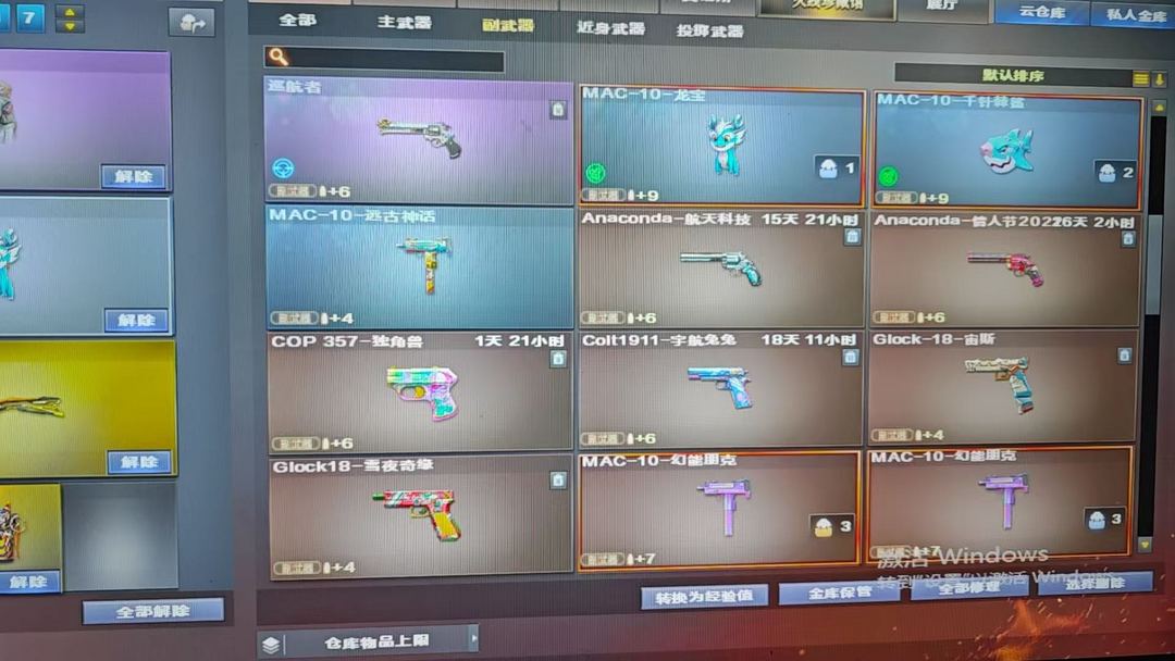 4防隼-6烈蝴蝶-清道夫小人枪-6盘炼狱-双宙斯-炽芒蝶刃,所有弹夹都有,生化道路齐全,不退包满弹夹