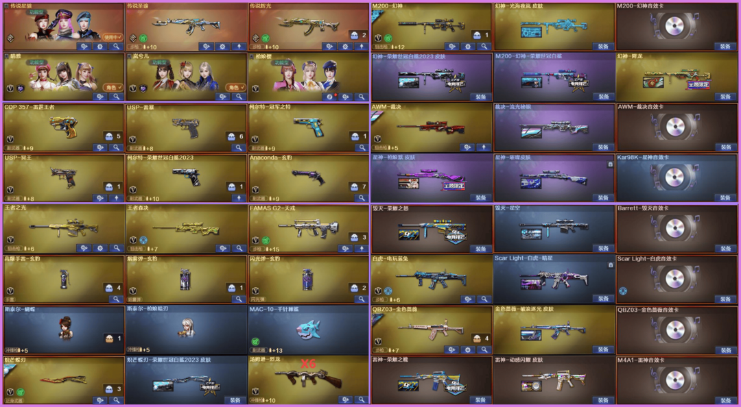 限制: 租号2次及以上 | 撤单率<60%才可租用此帐号装备描述:星骇圣谕幻神光海白鲨④皮音效/裁决流光卡星神枪娘卡/天戎白虎冥王冠特雷暴满副⑨音玄豹雷/炽芒6烈蝴蝶