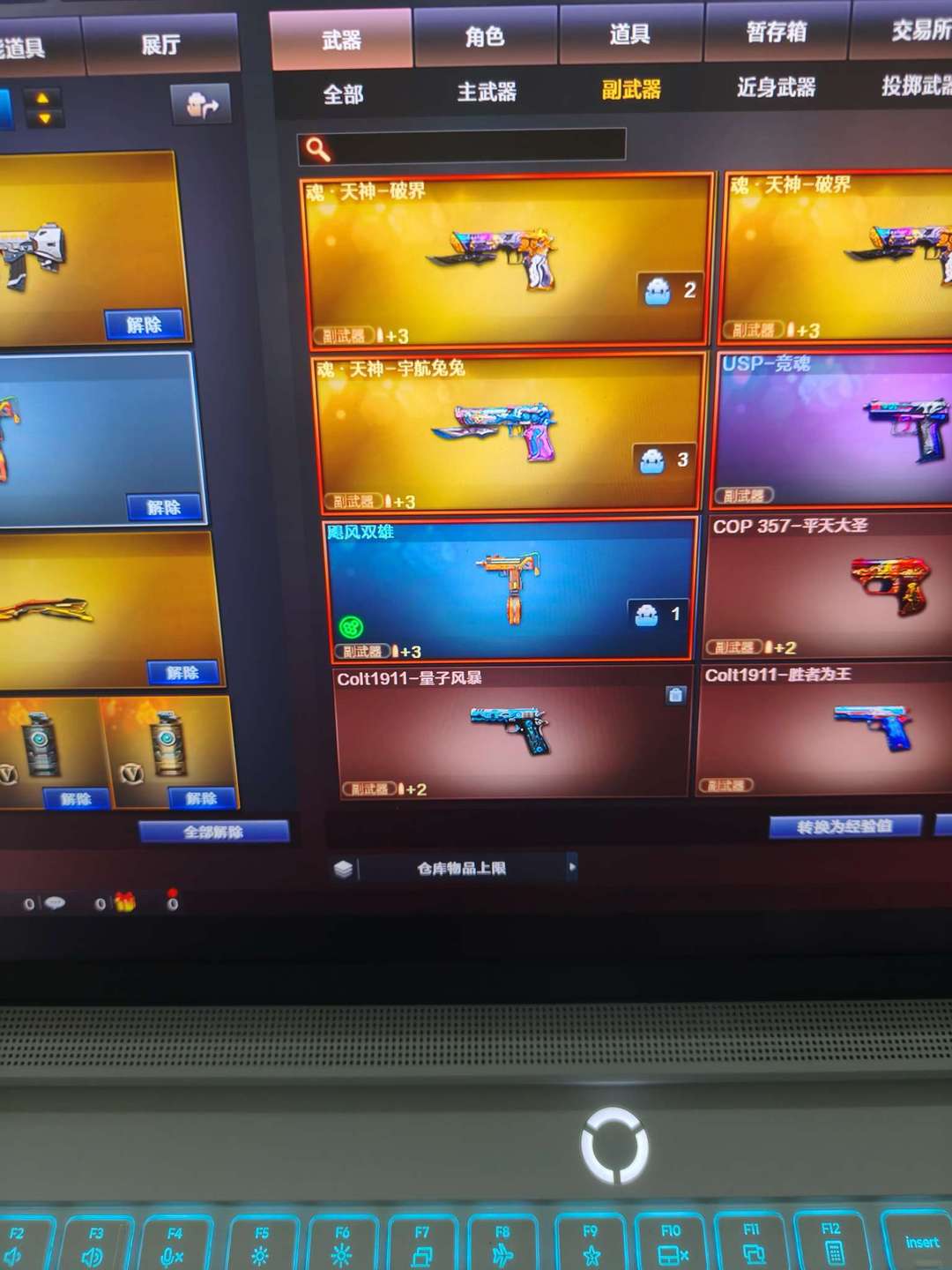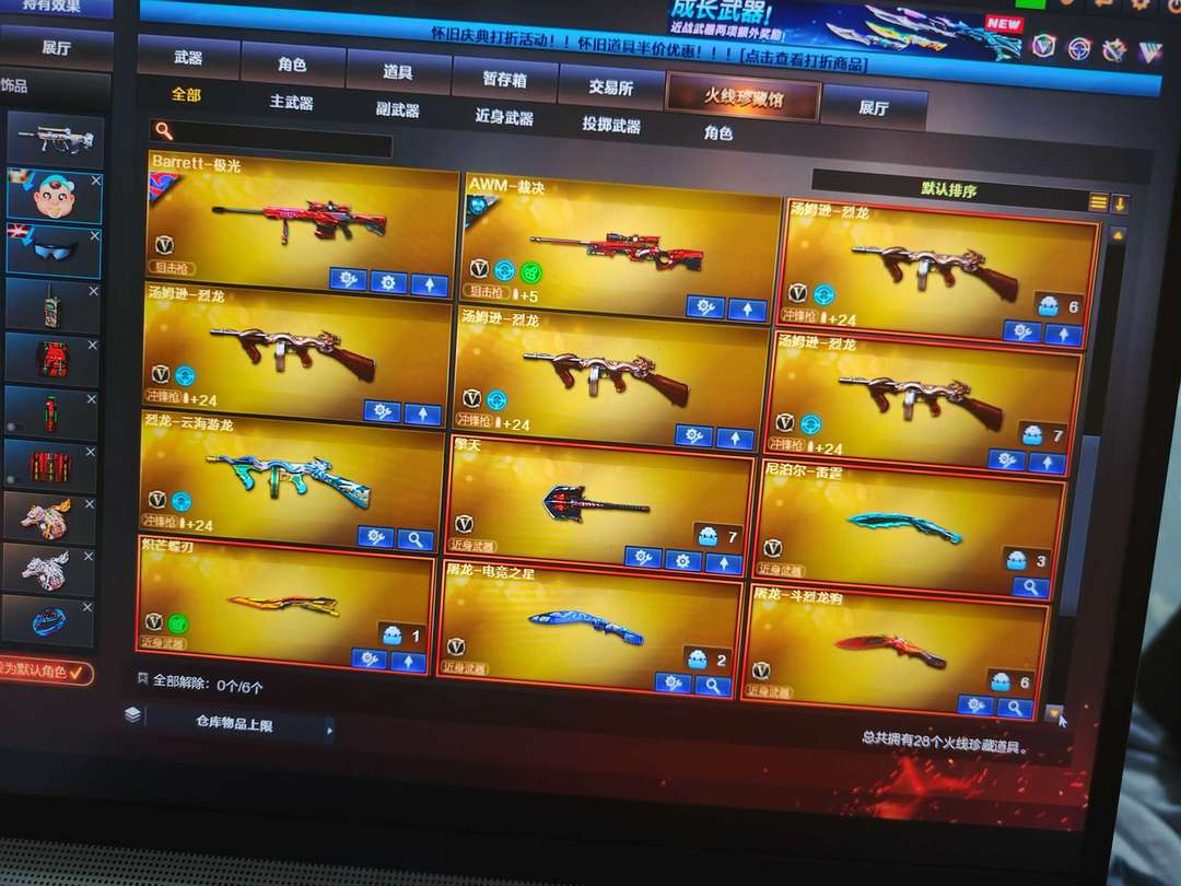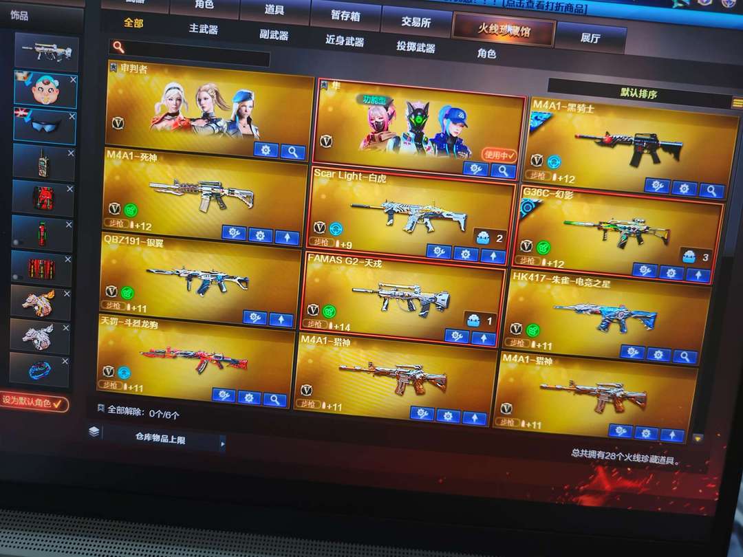 5烈龙,隼,异变清道夫,g36c幻影带皮,法玛斯,白虎,炽芒蝶刃,生化号,可排位