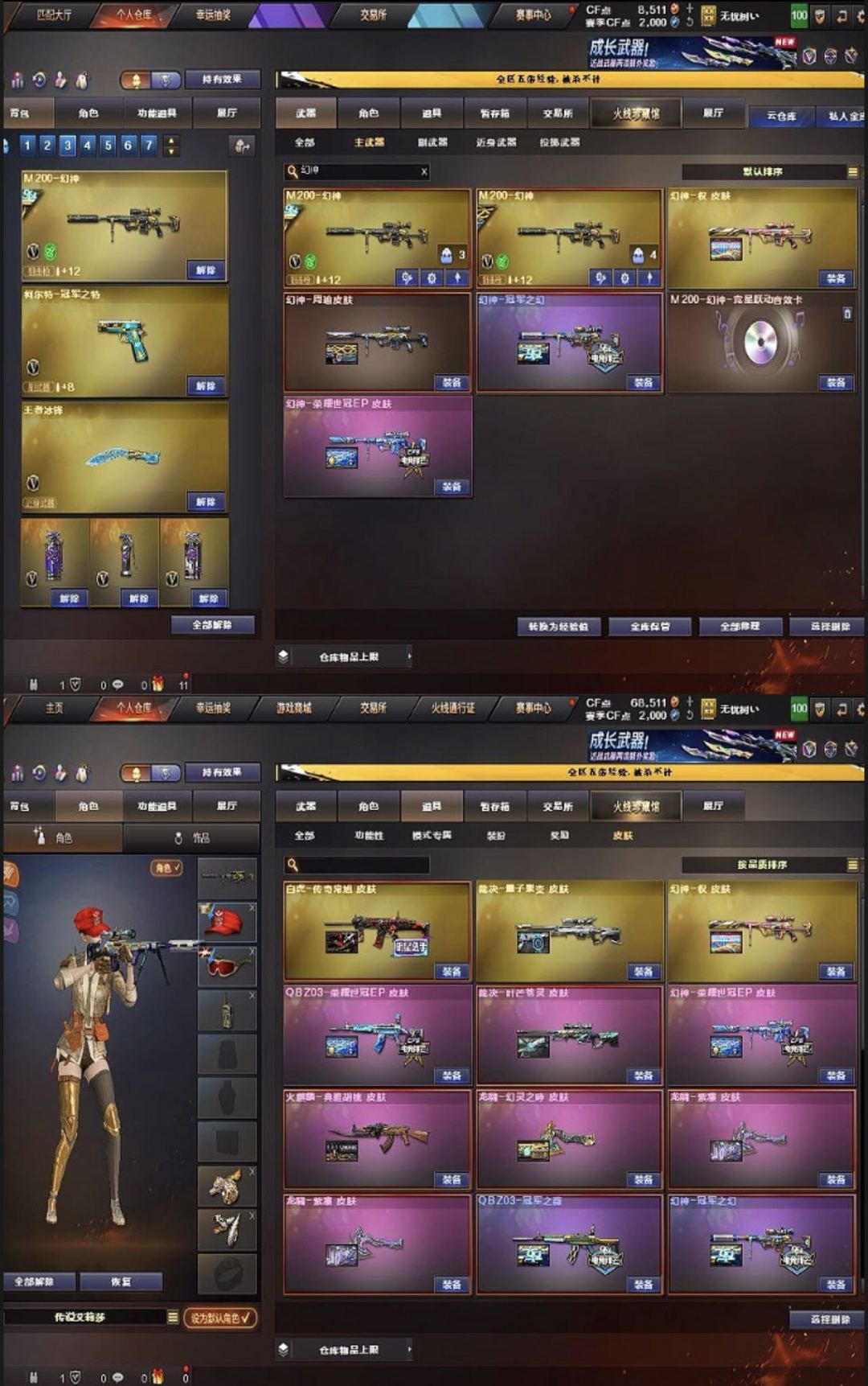 神威莲华|金翼禅狮龙宝|八面玲珑|3蝴蝶刀|6盘狮子6烈|艾丽莎双幻4皮冠军套|裁决卡常旭|冠特