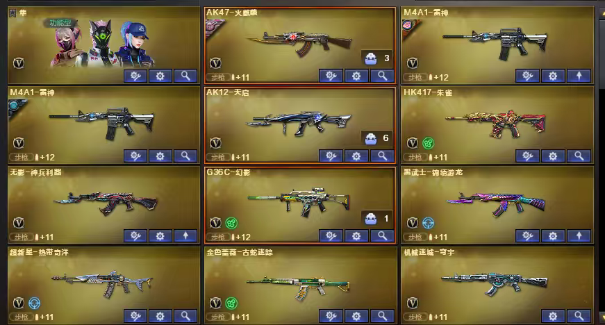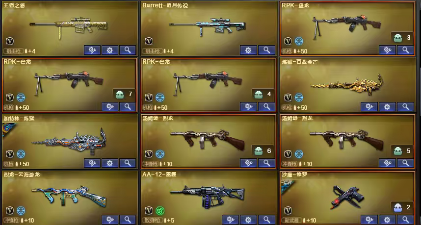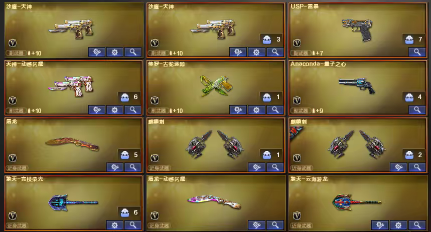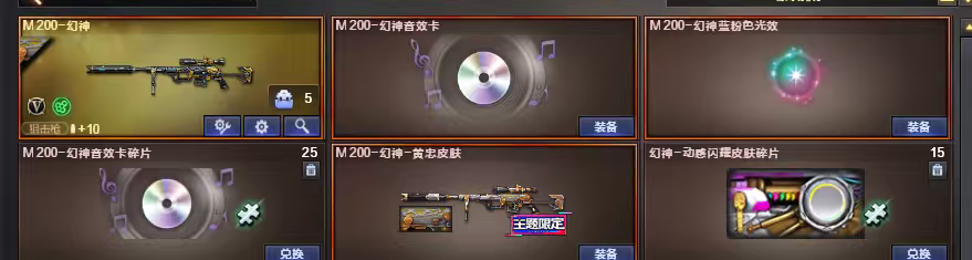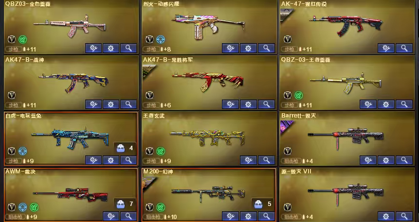 装备描述:幻神(带音效卡) 幻影 qbz金色蔷薇 qbz王者蔷薇 裁决 天启 毁灭 电玩蓝兔 雷暴 屠龙 麒麟刺 隼(四防)