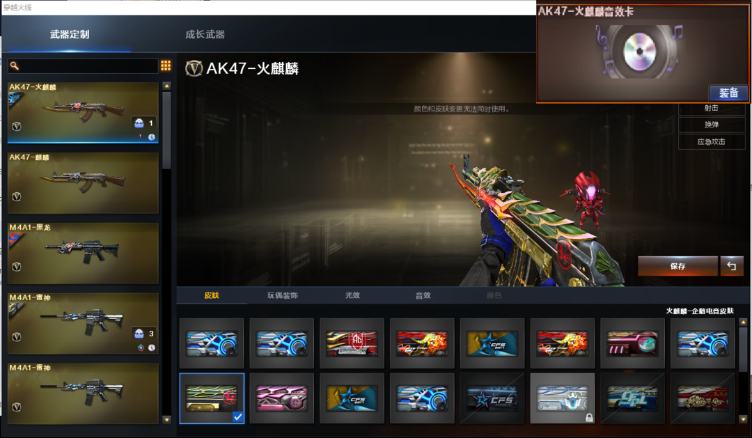 装备描述:排位:可以.、、、、、、、、、、、生化四防:(可以变更背包、查看生化僵尸血量):无需换弹、6烈龙、6盘龙、炼狱、KAC狂怒咆哮、双面神、斯泰尔蝴蝶、异变清道夫、死亡之眼、MAC-涂鸦、手斧镜、炽芒蝶刃、生化减速雷、超级对讲机、全部弹匣、、、、、、、、爆破四防:幻神3皮+音效(KZ皮肤、动感皮肤、黄忠皮肤)、98K星神带音效、王者风神、M200-竞技荣光、、、USP雷暴、USP冥王、玄豹左轮、柯尔特竞技荣光、柯尔特荣耀世冠白鲨、COP雷霆王者、、、G36C幻影、加利尔ACE-天袭、FAMAS G2-天戎、传说暗裔、白虎、QBZ-金色蔷薇、QBZ-王者蔷薇、、、、幻神音效、裁决音效、星神音效、毁灭音效、雷神音效、朱雀音效、火麒麟音效、黑骑士音效、、、1套雷霆、5套雷暴、4套堕天神、7套电竞装甲、5套竞技荣光、1套雷霆王者、、、、生化四防(沙漠玫瑰、职业经理、隼)、爆破四防(妮妮、云悠悠、王者影豹、雨棠)