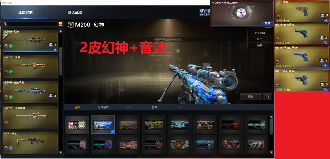 装备描述:排位:可以、、、、、生化四防(可以变更背包、查看生化僵尸血量):无需换弹、6烈龙、5盘龙、2炼狱、炼狱秦师、斯泰尔蝴蝶、MAC-10涂鸦、死亡之眼、炽芒蝶刃、对讲机、生化减速雷、全部弹匣、、、、、、、爆破四防:幻神音效(EP荣耀世冠、动感闪耀皮肤)、EP柯尔特、USP雷暴、COP雷霆、柯尔特竞技荣光、QBZ金色蔷薇、、、、幻神音效、毁灭音效、雷神音效、屠龙音效、火麒麟音效、黑骑士音效、、、5套雷霆、5套雷暴、1套堕天神、1套竞技荣光、、、生化四防(传说影煞、幽)爆破四防(王者貂蝉、王者潘多拉、王者闭月羞花)