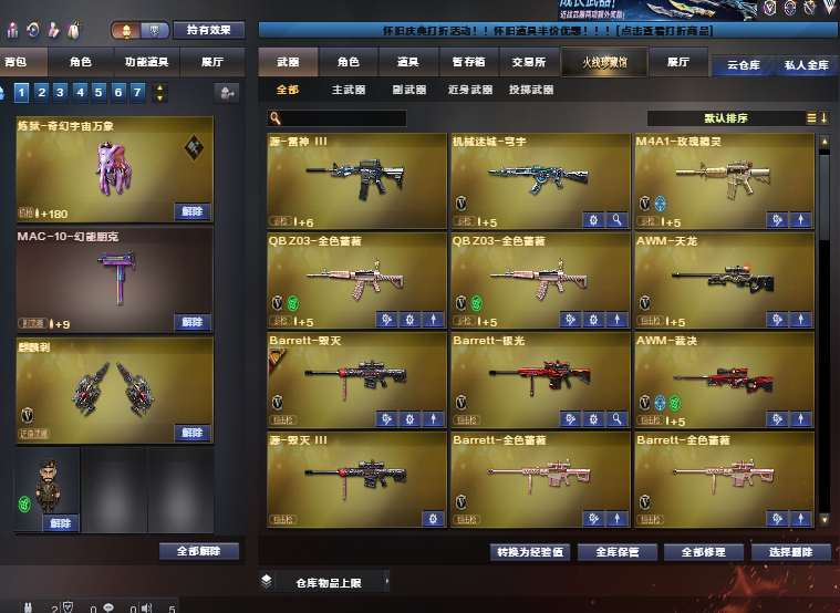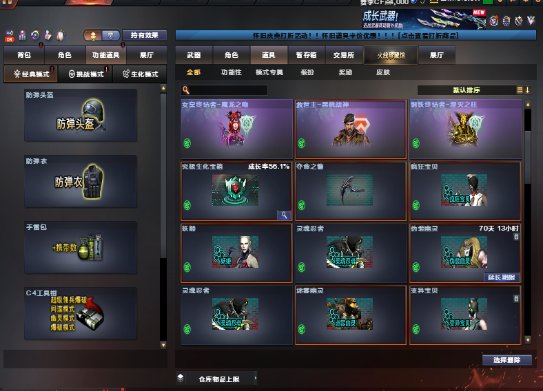 限制: 租号20次及以上 | 撤单率<45%才可租用此帐号装备描述:传说星骇USP冥王❤泡泡象❤6盘6烈毒蜂清道夫6修罗减速雷❤生化背包变更❤生化全装