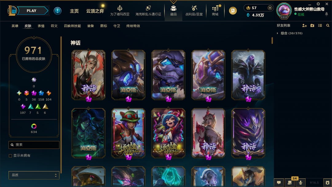 ██ 全英雄 2000皮丨只可匹配禁止其他模式丨40神话丨IG卡莎丨斩星创星丨冰雪皎月