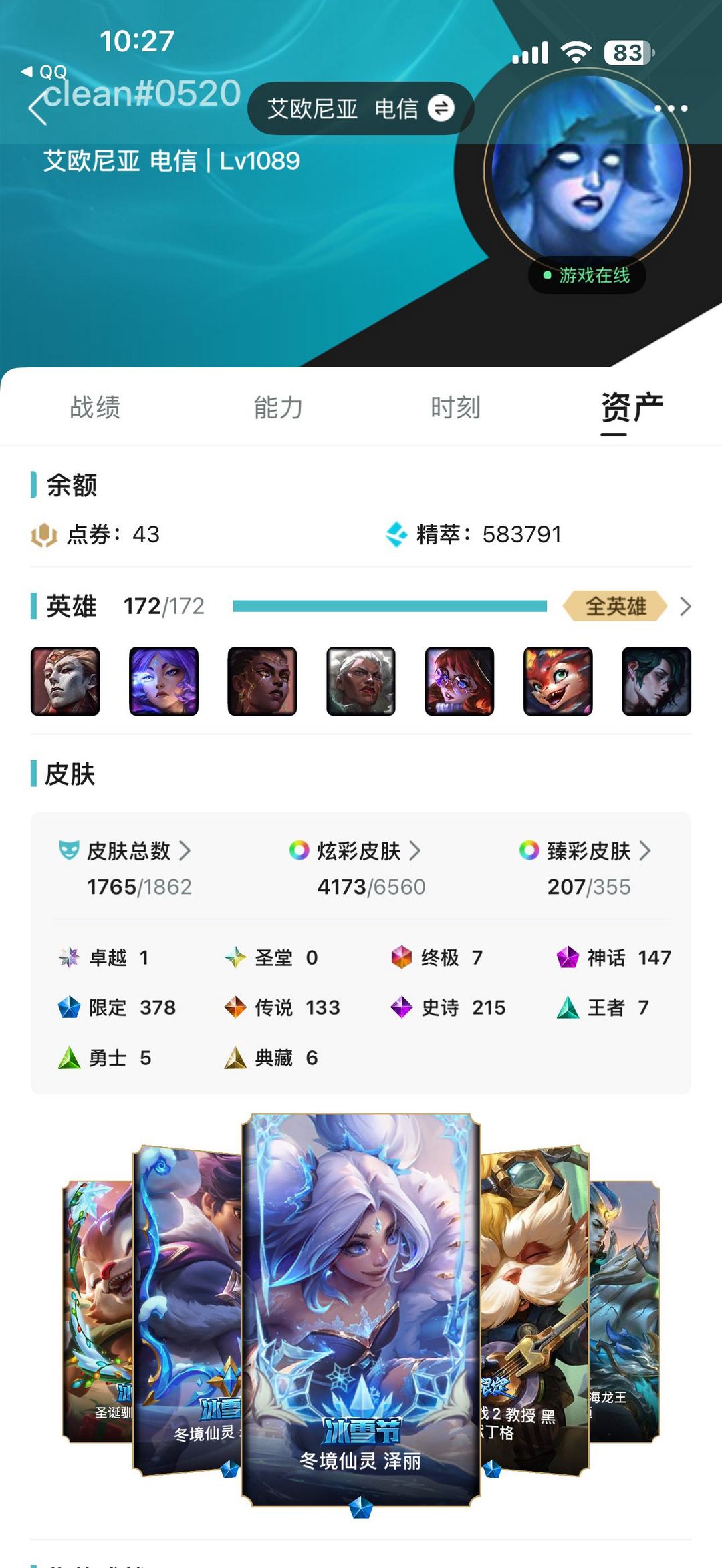 顶级黑铁可排T1大礼包原皮1765⚡炫彩4200⚡臻彩207⚡三档名人堂卡莎⚡至死不渝究极氪金老号⚡