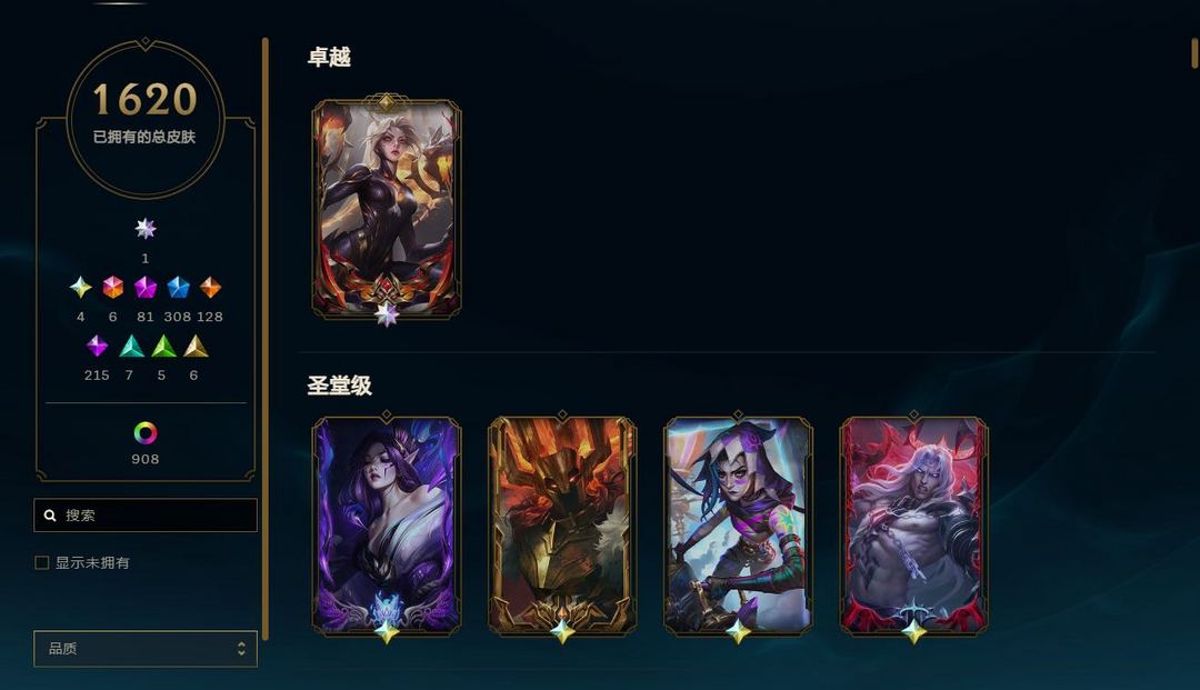 装备描述:名人堂卡莎,圣堂莫甘娜铁男金克丝佛爷都有,各种模式都很顶,想玩什么就玩什么带妹必备,令牌已开快速上号不墨迹