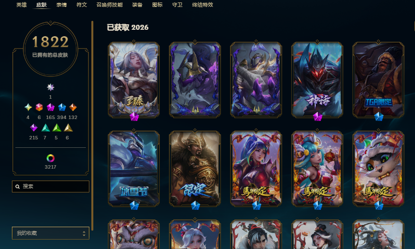 1822皮3217炫223臻彩⭐满至臻神幻⭐3档卡莎⭐4圣堂⭐6色龙瞎⭐云顶4至臻33神话9神话棋盘