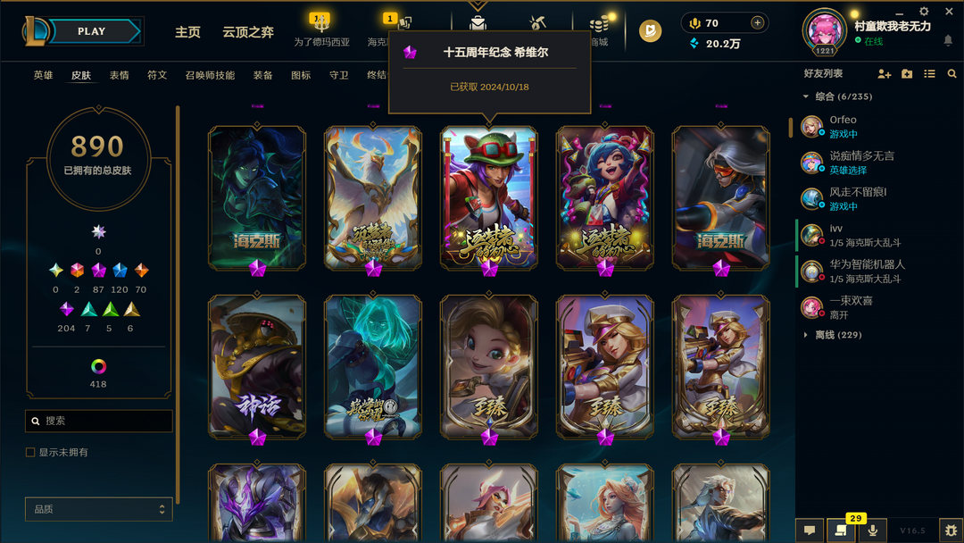 黑色玫瑰890原皮❤绝对真实❤海克斯乱斗专用❤极品至臻皮肤❤云顶四神话❤神话莫甘娜❤小小亚索❤️可排