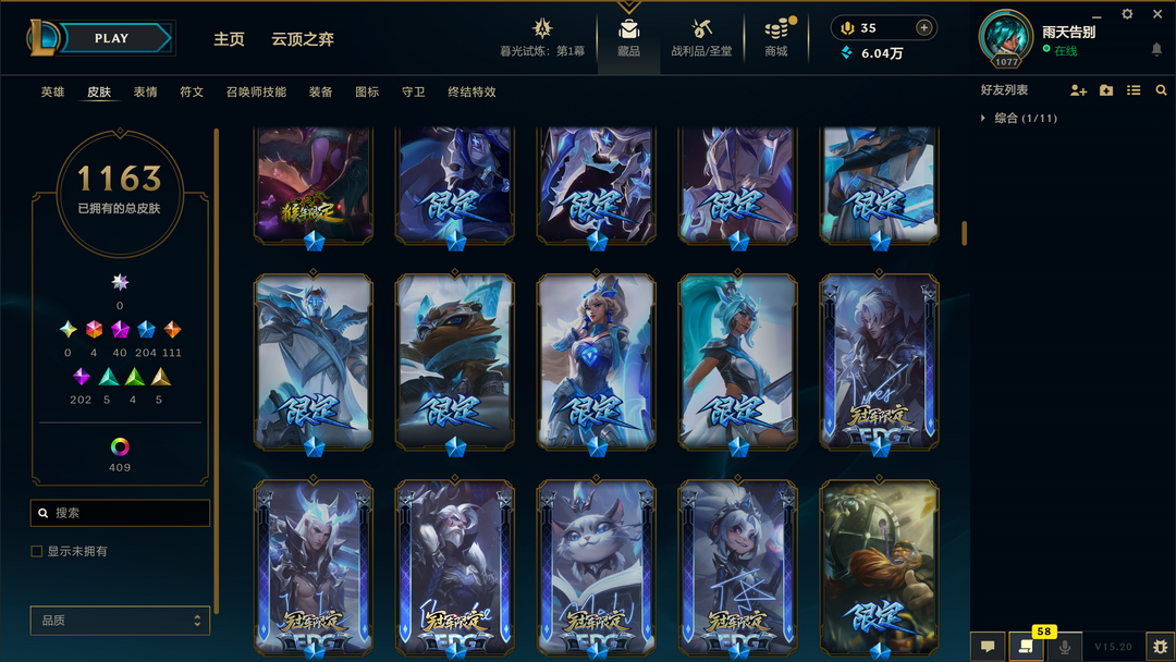 联盟四区⭐1.3k质量真实皮⭐EDG全套臻彩⭐龙瞎⭐全神话至臻大礼包臻彩