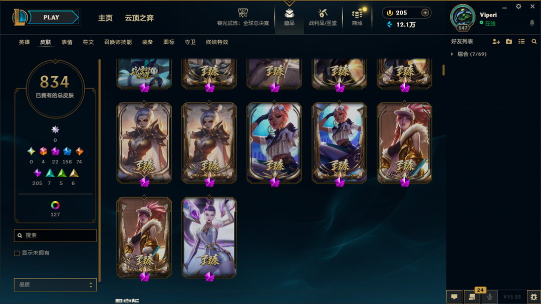 装备描述:❤7000皮肤【联盟四区】青铜可排位⚡3色龙瞎⚡至臻卡莎⚡摄魂VN⚡奥斯曼⚡玉剑男刀:青铜白银【真实黑铁】