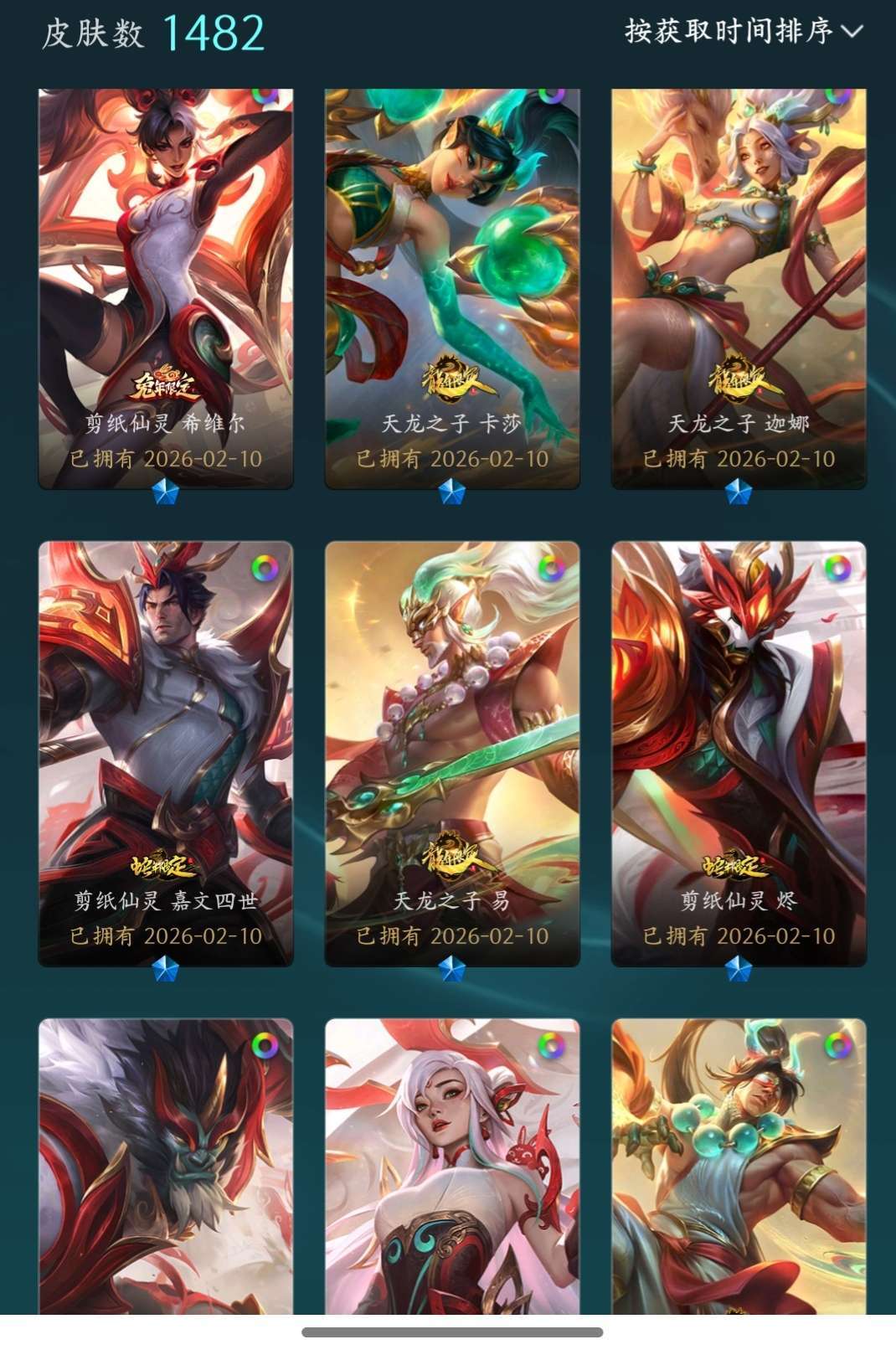 艾欧尼亚,圣堂佛耶戈龙王,踏雪烈焰天龙剪纸四套,龙虾、龙猴、龙刀,机甲加里奥,总1482皮,可排