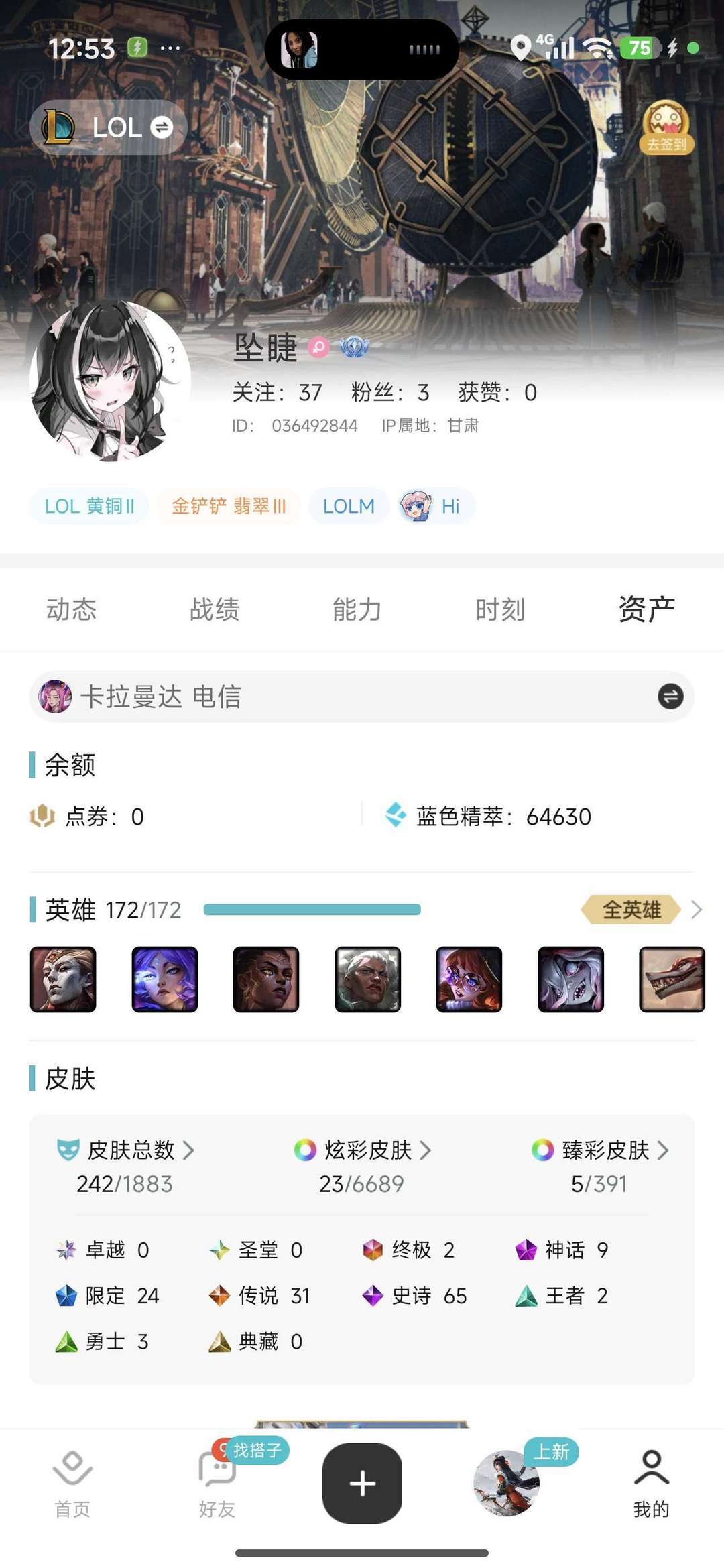 1887个皮肤,不多用着还行,全英雄已解锁