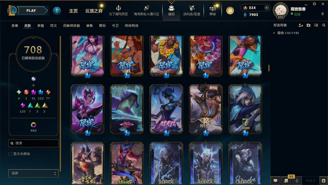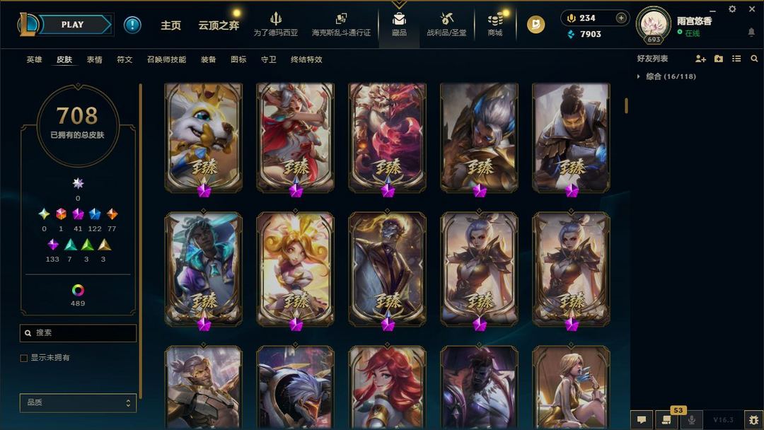 【LOL大王】1200P乄708原皮乄489炫彩乄31臻彩乄41神话乄122限定乄斗魂觉醒佛耶戈