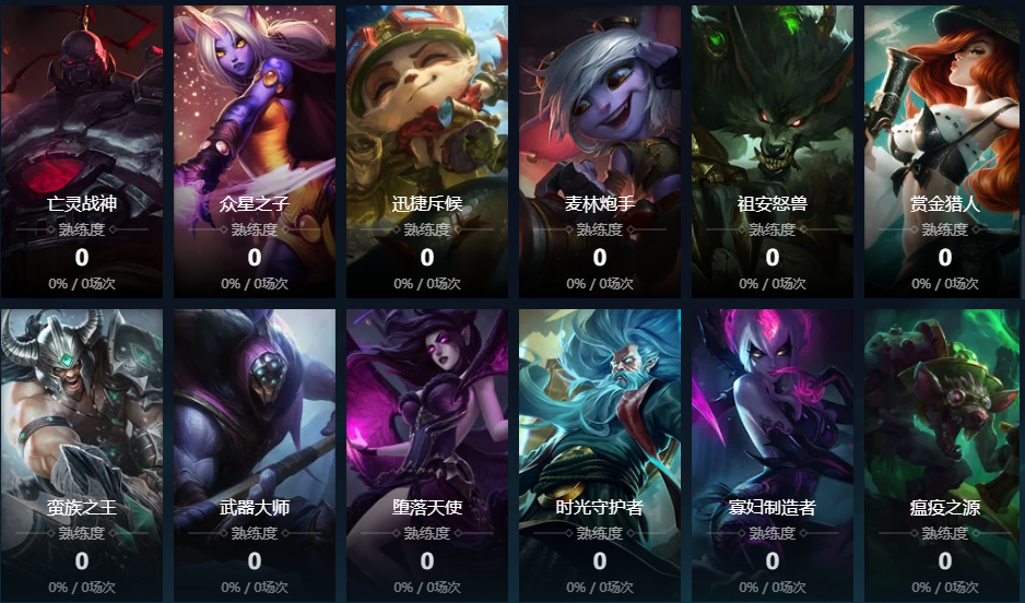 未来守护者;远古巫灵;符文法师;机械公敌;刀锋舞者;放逐之刃;黑暗之女;无极剑圣;迅捷斥候;武器大师
