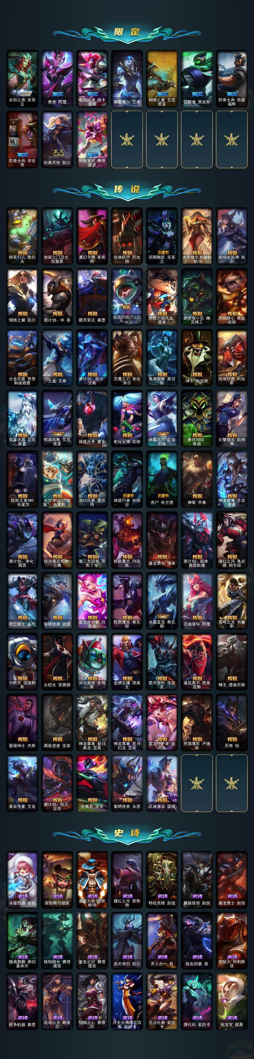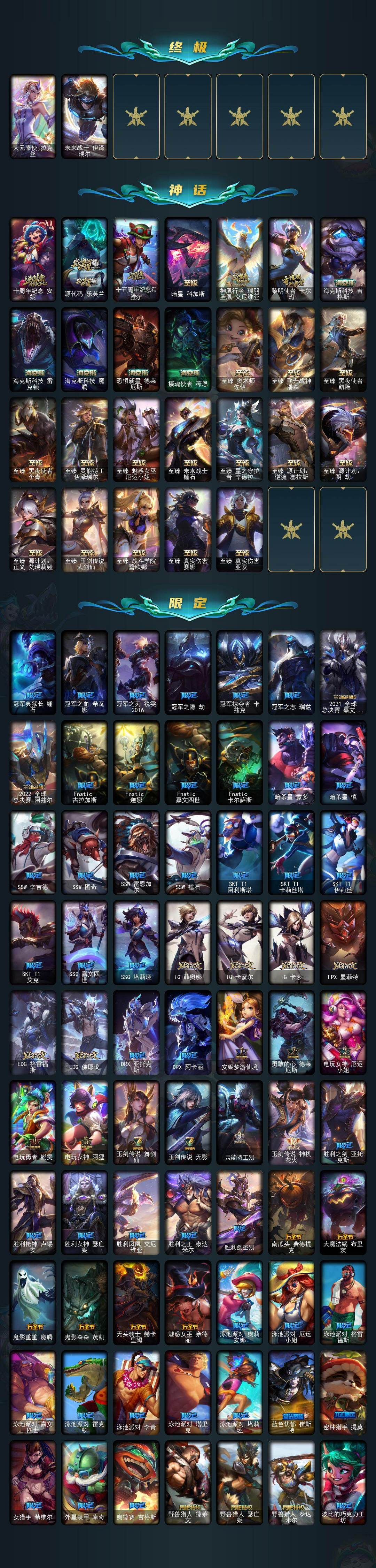 733皮肤-226炫彩-2终极-26神话-121限定-68传说-170史诗-替父从军花木兰-王国机神