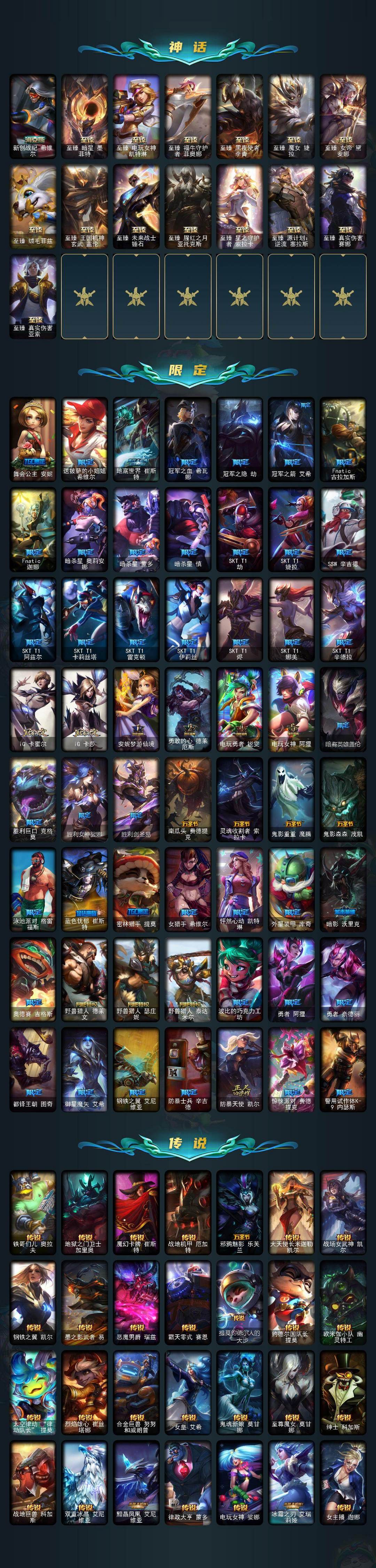 748皮肤-182炫彩-2终极-24神话-97限定-65传说-185史诗-玉剑传说无极白虎-DJ娑娜