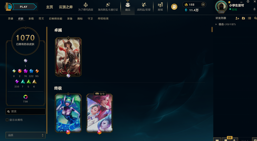 【艾欧尼亚★可排位】全1850皮★臻彩34★神话74★双色龙虾★圣堂佛耶戈★段位实时★真实描述★