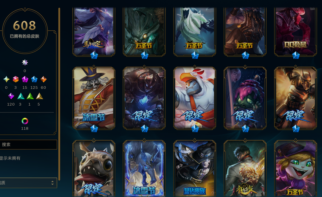 【黑色玫瑰❤可排位】1250p原皮628❤龙虾鸡里奥❤全至臻海克斯❤云顶之弈神话阿狸神话咖啡厅