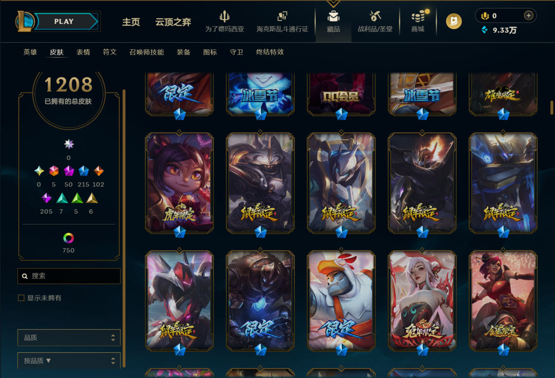 艾欧尼亚1208原皮白菜包天⚡双色龙虾⚡莲花之令⚡灰烬派克铁男⚡王国贾克斯腕豪⚡至高天派克⚡44臻彩