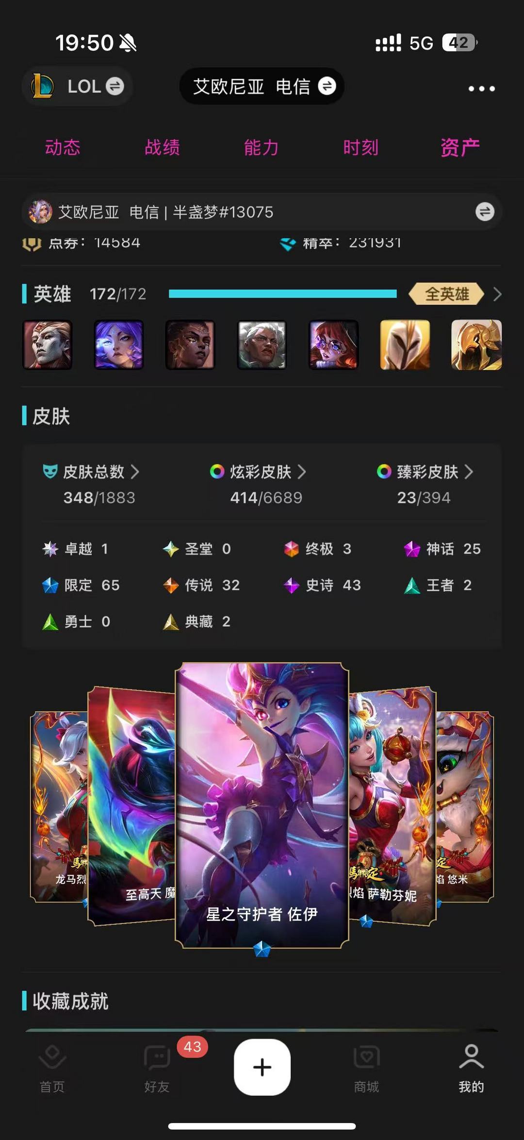三区钢铁可排⚡580皮31臻彩神话⚡海克斯安妮⚡皇子⚡至臻狼神乌鸦⚡暗香皎月⚡梦魇泽丽⚡幻灵日女⚡