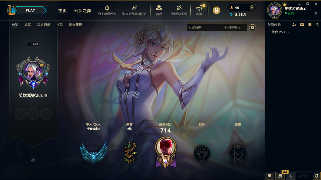 段位:352级 华贵铂金II